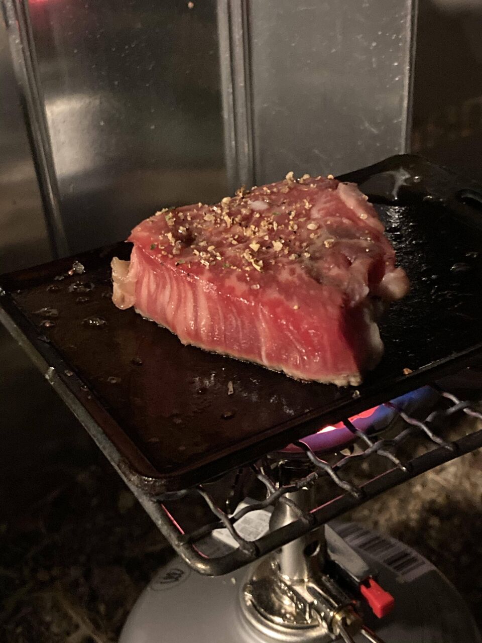 キャンプで焼いて食べるんかな
