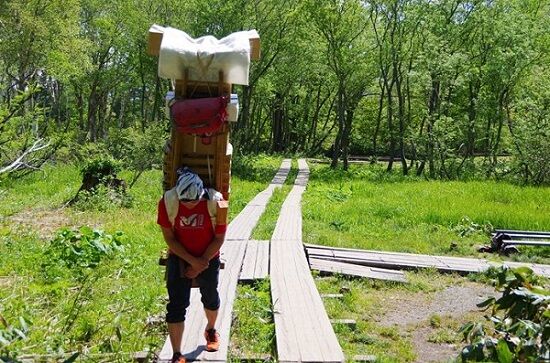 客が多い小屋で人力で荷上げはまずやってない、たいていヘリ