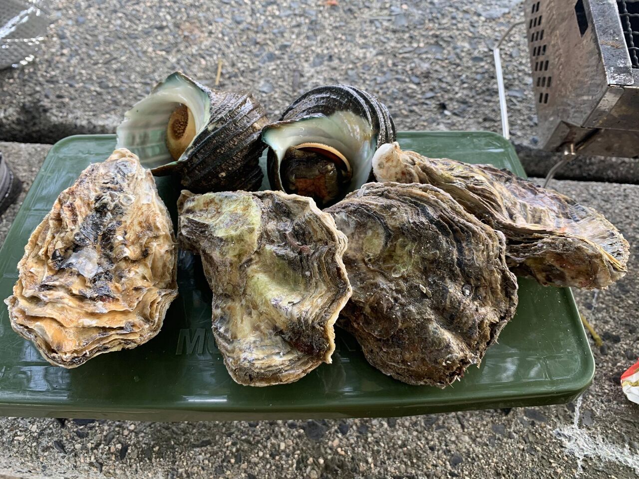この牡蠣もサザエも1個100円やぞ