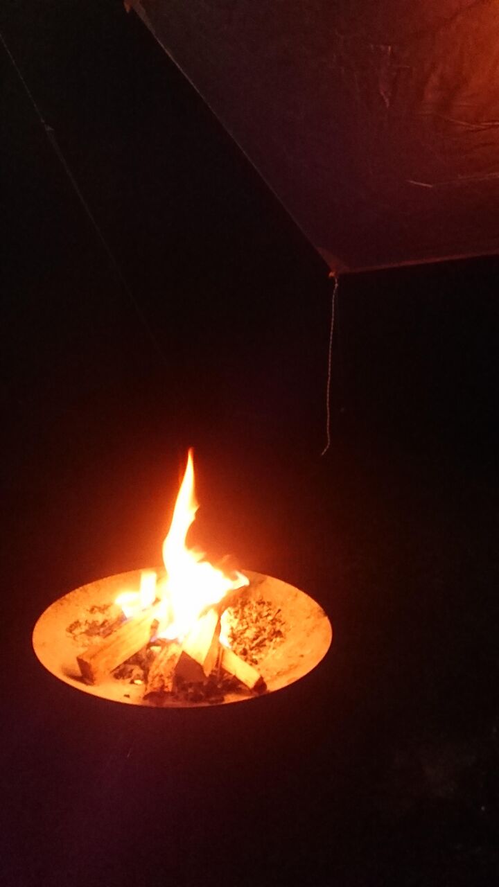 焚き火一人でつけたんか?