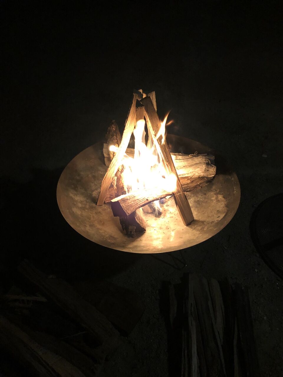 火吹き棒とかめんどくさいから扇風機とか火に当てておけば火種が飛び散ってキャンプファイアーや
