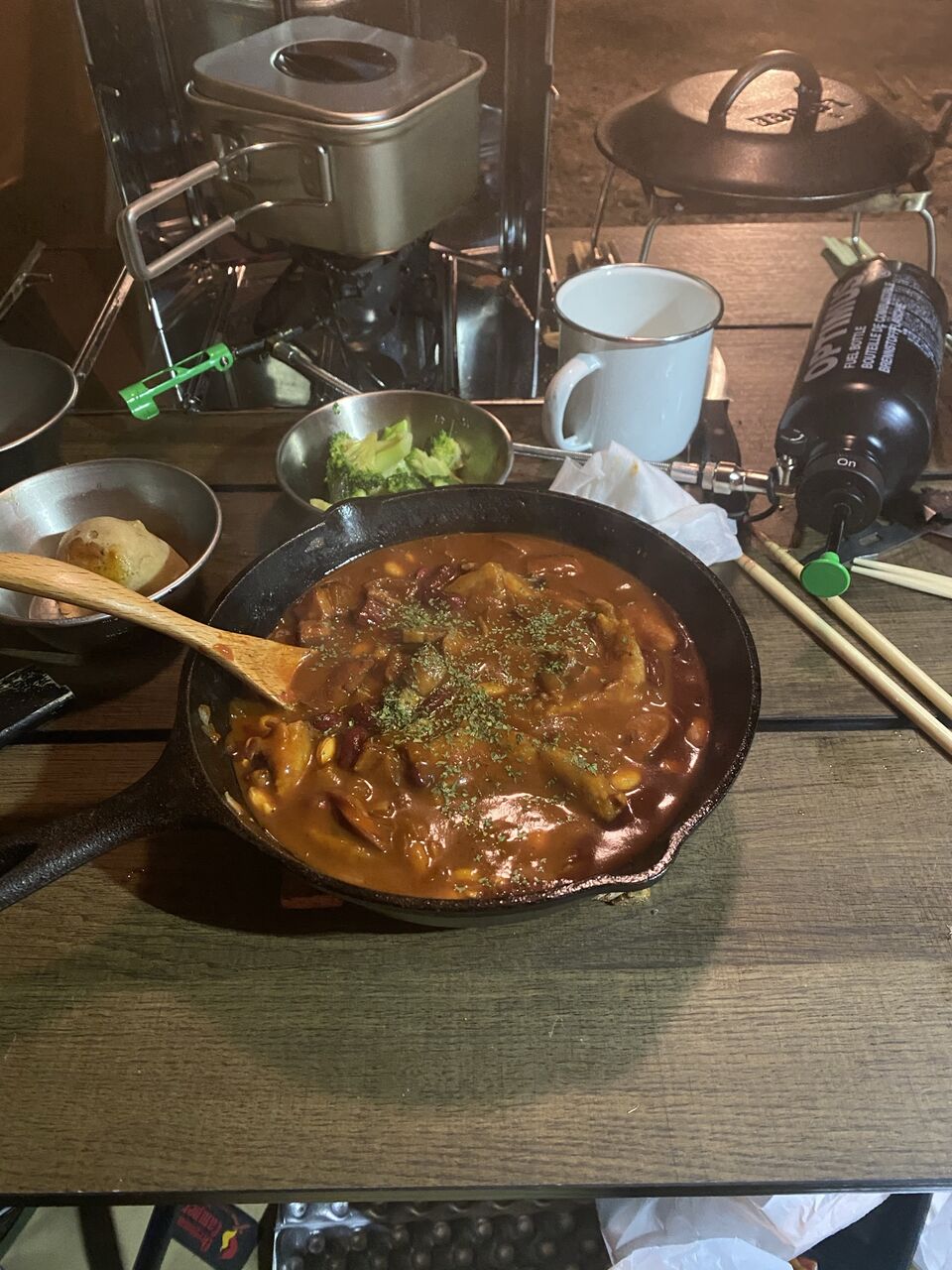 普段してたら、キャンプでは簡素なものになるのが必然なんだがなw