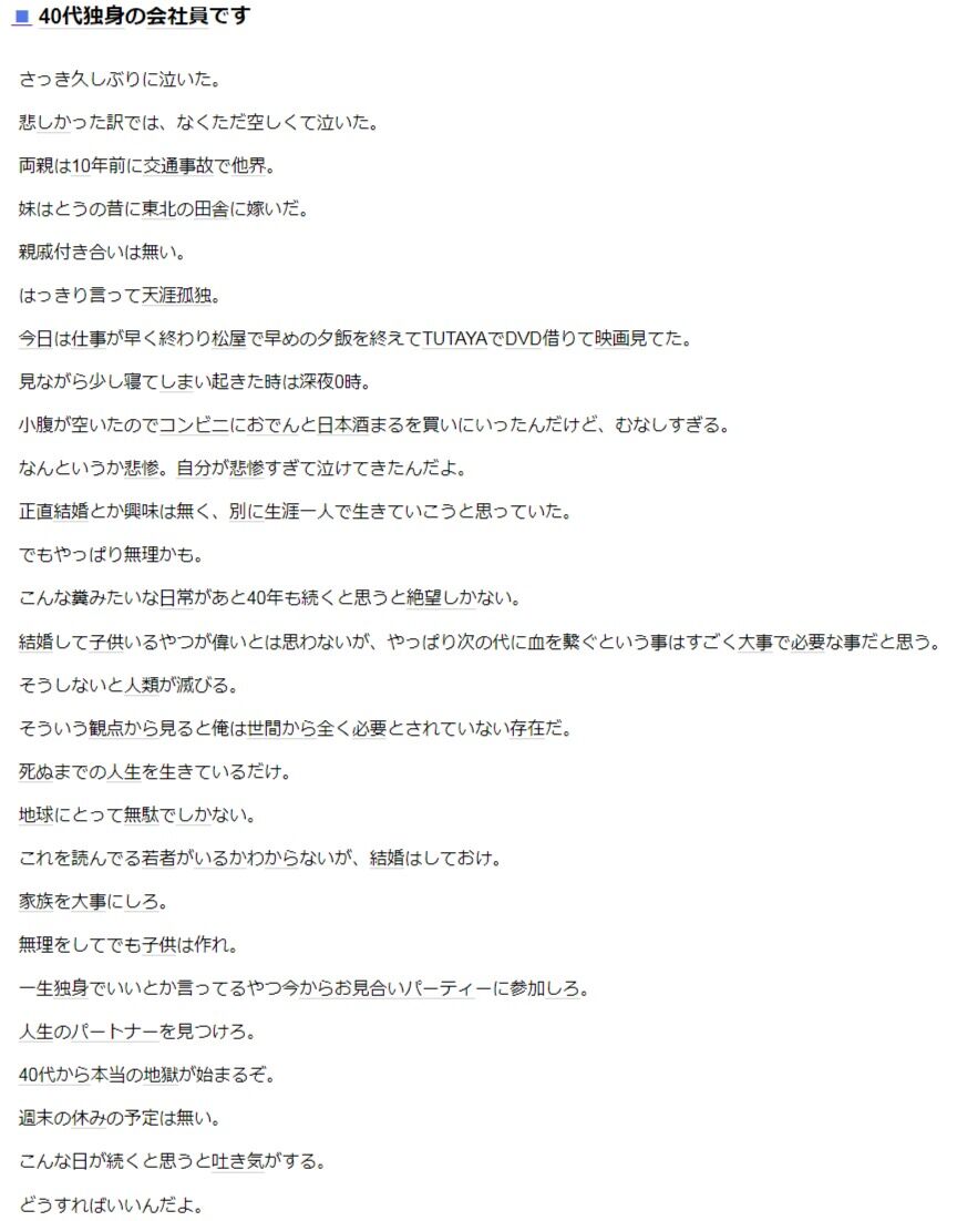 無理してでも結婚して、無理してでも継続しないと孤独になる