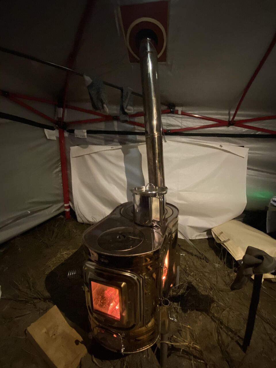 でも安物のスクエアテントにストーブジャックつけて薪ストーブ運用しとるんやわ