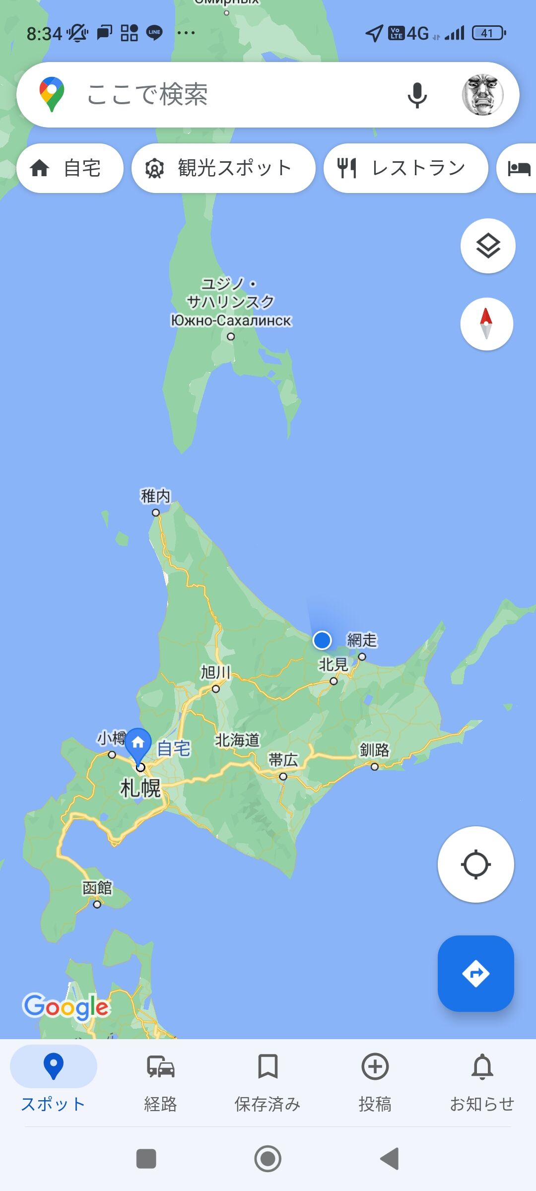 こんなルートで北海道一周したわ