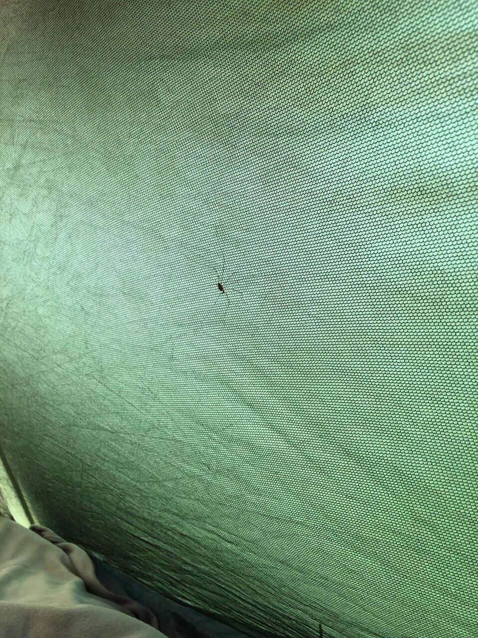 寒くて寝付けないし、起きれないし、スマホいじりで寝袋から手を出すのも嫌だから、寝袋にくるまってクモさんを眺める