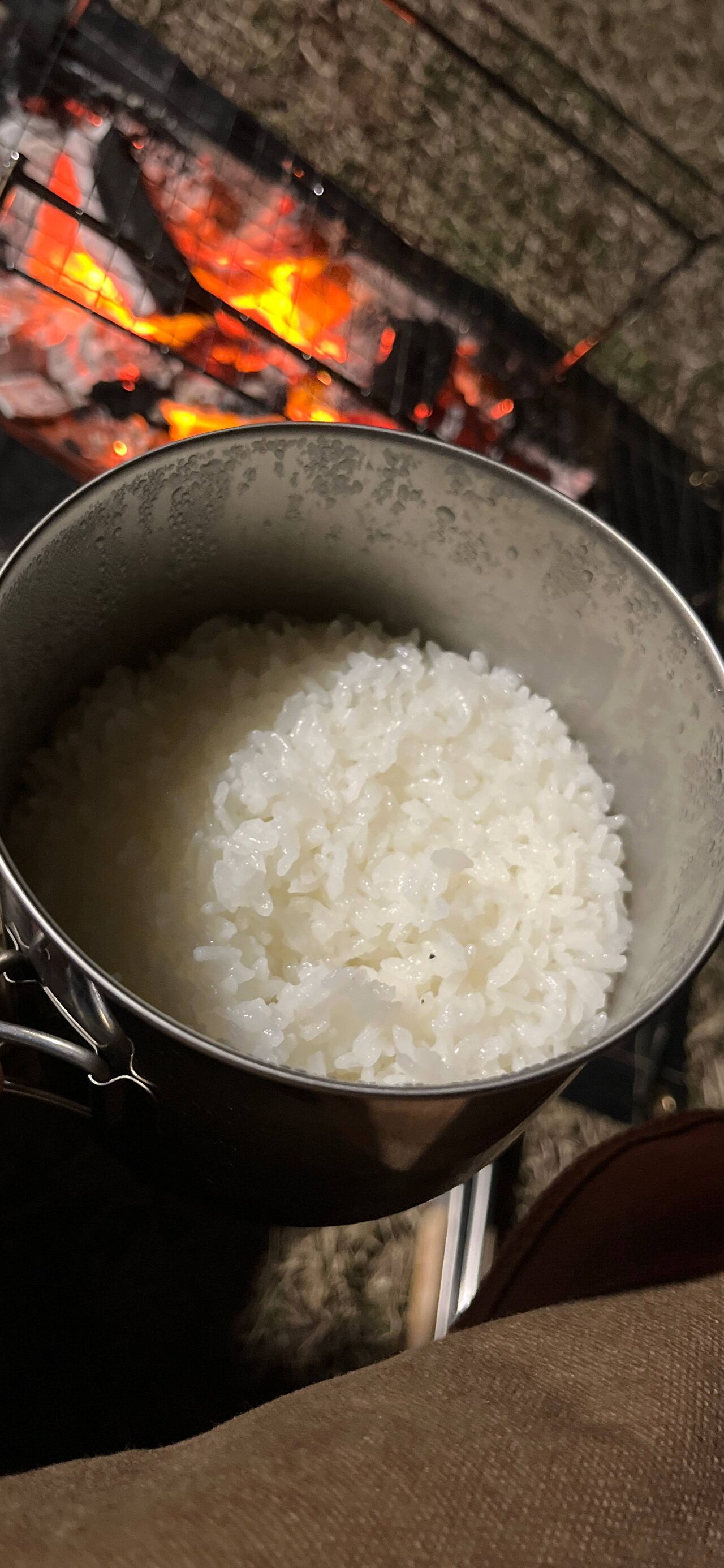 カエンで炊く米って結構綺麗に出来上がるんだよな